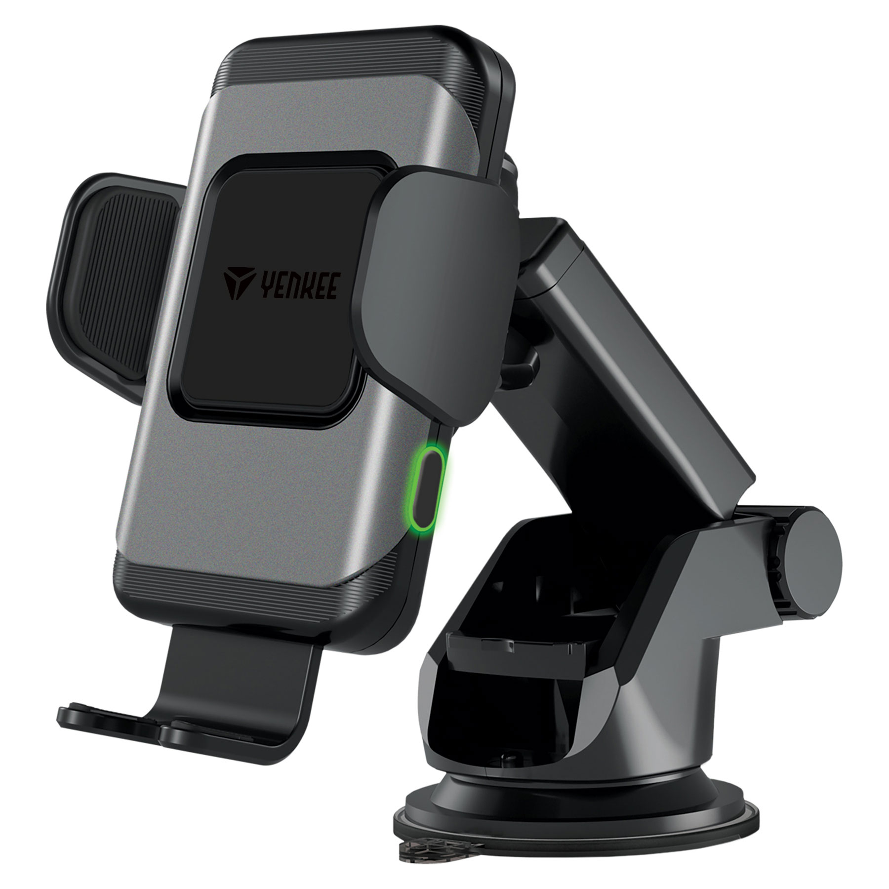 It’s easier than you could ever think. There’s no need of any shims or stickers on the phone, inserting and ejecting is fully automatic. I am a handy device combining an automatic car holder with a wireless Qi charger. I am flexible with many positioning options. The side touch buttons control the mount jaws, allowing you to handle the mount with one hand.