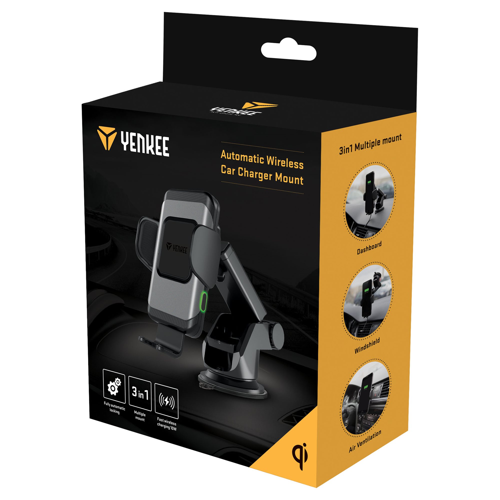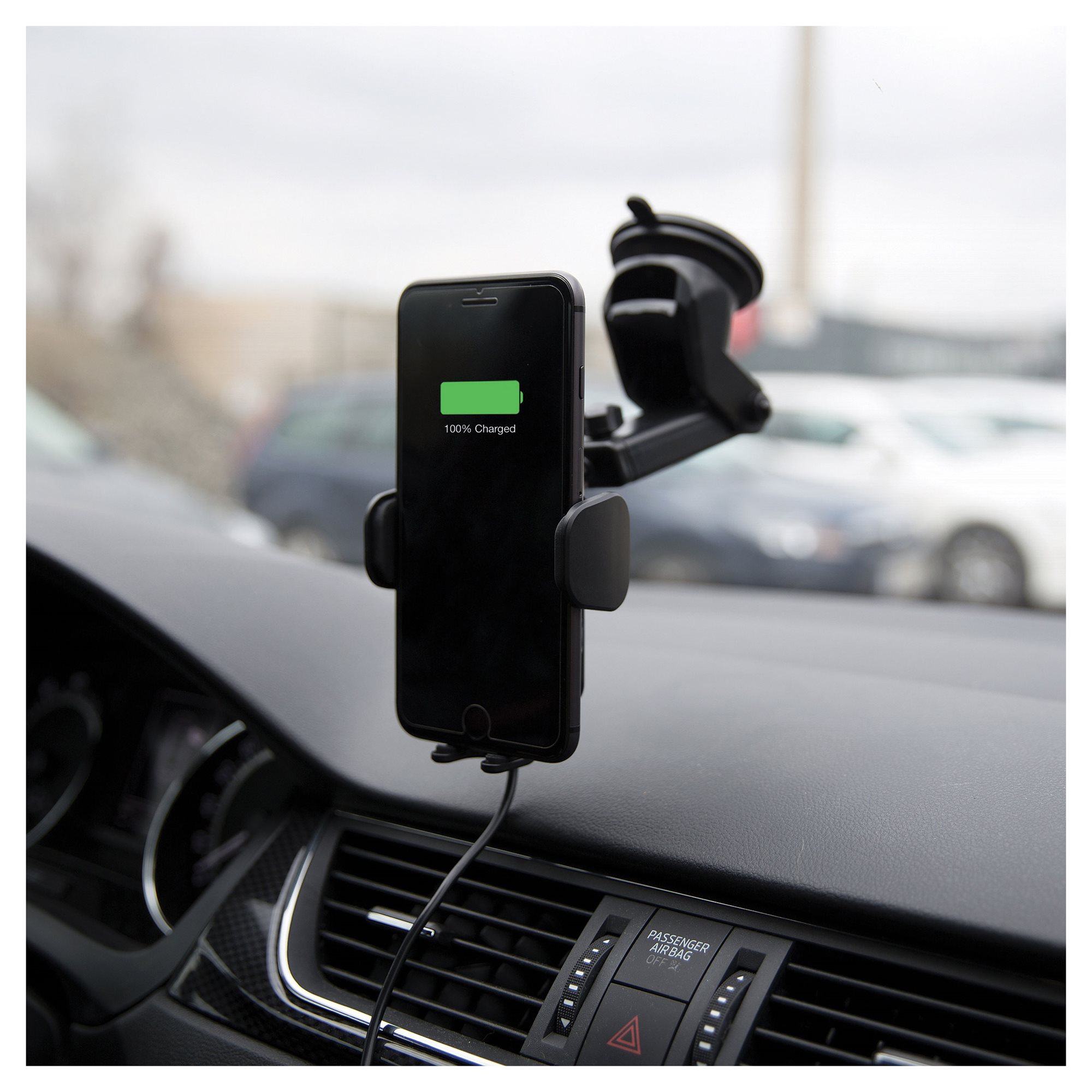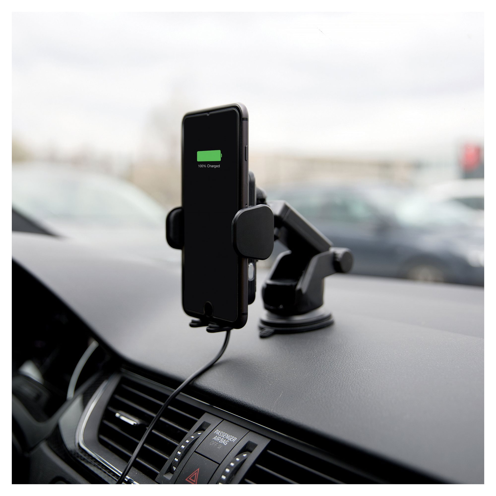 I am a fully automatic car mount with certified wireless Qi charging and quick charging support with maximum power up to 10W. I fit in all cars thanks to three attachment methods. You can easily stick me onto the windshield or clip me in the car vent outlet. I will allow you to charge your smartphone while driving with ease. Control me with just one hand and enjoy your driving freedom.