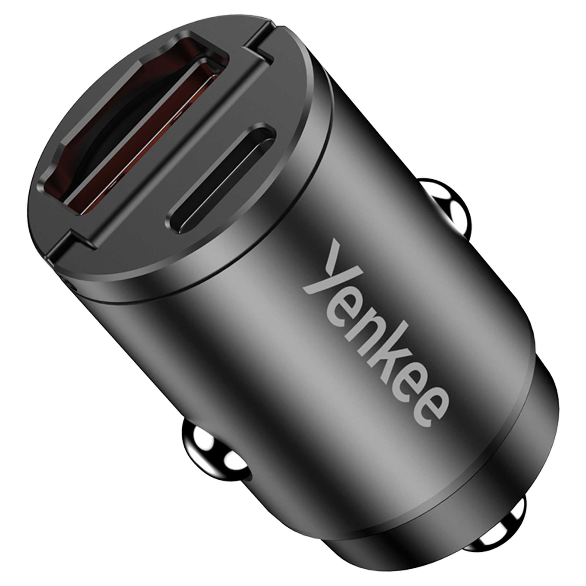 USB car charger with fast charging technology Power Delivery and two USB-C ports.