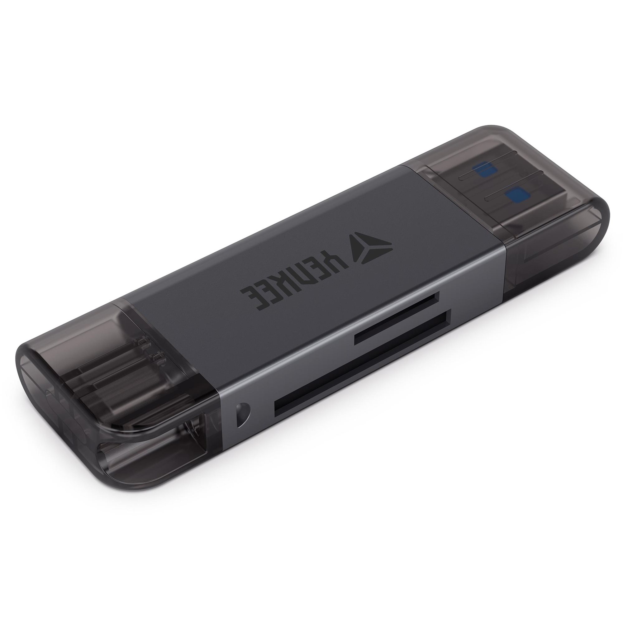 Data transfer speed is my speciality, as one of my USB-C connectors transfers data at speeds of up to 480 Mps and the other USB-A even up to 5 Gbps! Plus, I'm one of the few who can write and read data from two memory cards at once, and that's always handy. And when you look at my elegant polished aluminium body and compact size, you'll fall in love with me at first sight and love showing me off to your friends on the go.