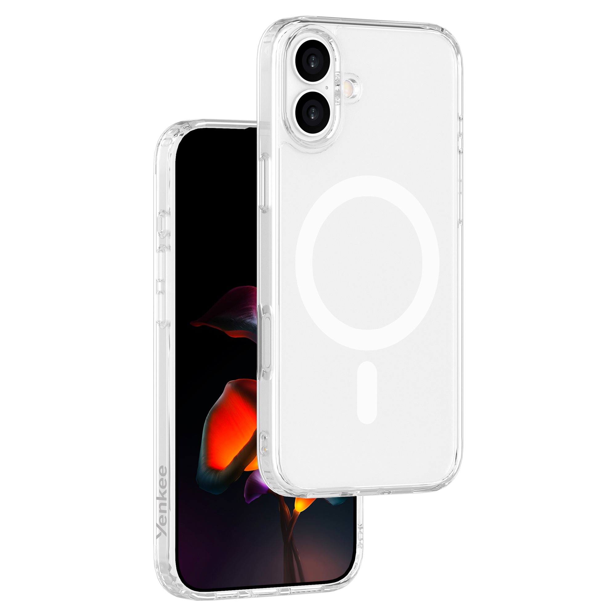 A thin transparent mobile phone case compatible with MagSafe ensures comprehensive protection for your phone. Enhanced protection is provided by a slight overlap above the phone's display, protecting it from potential damage.