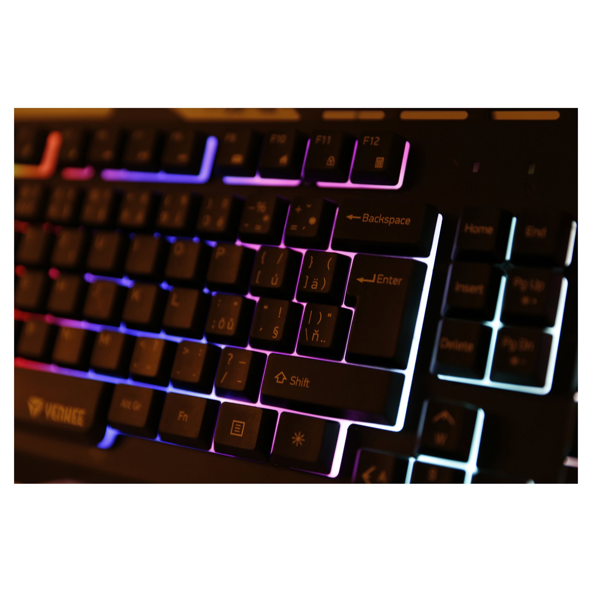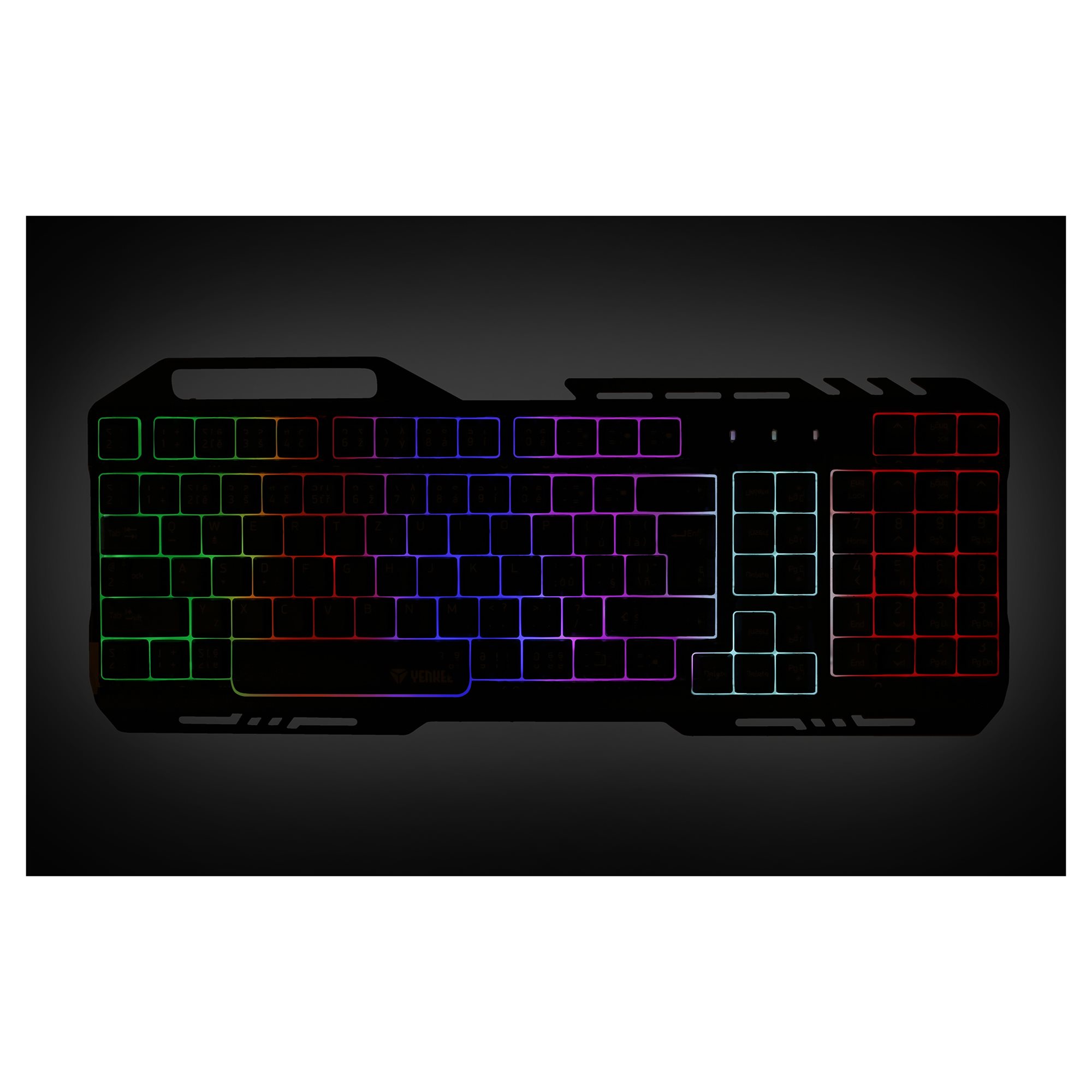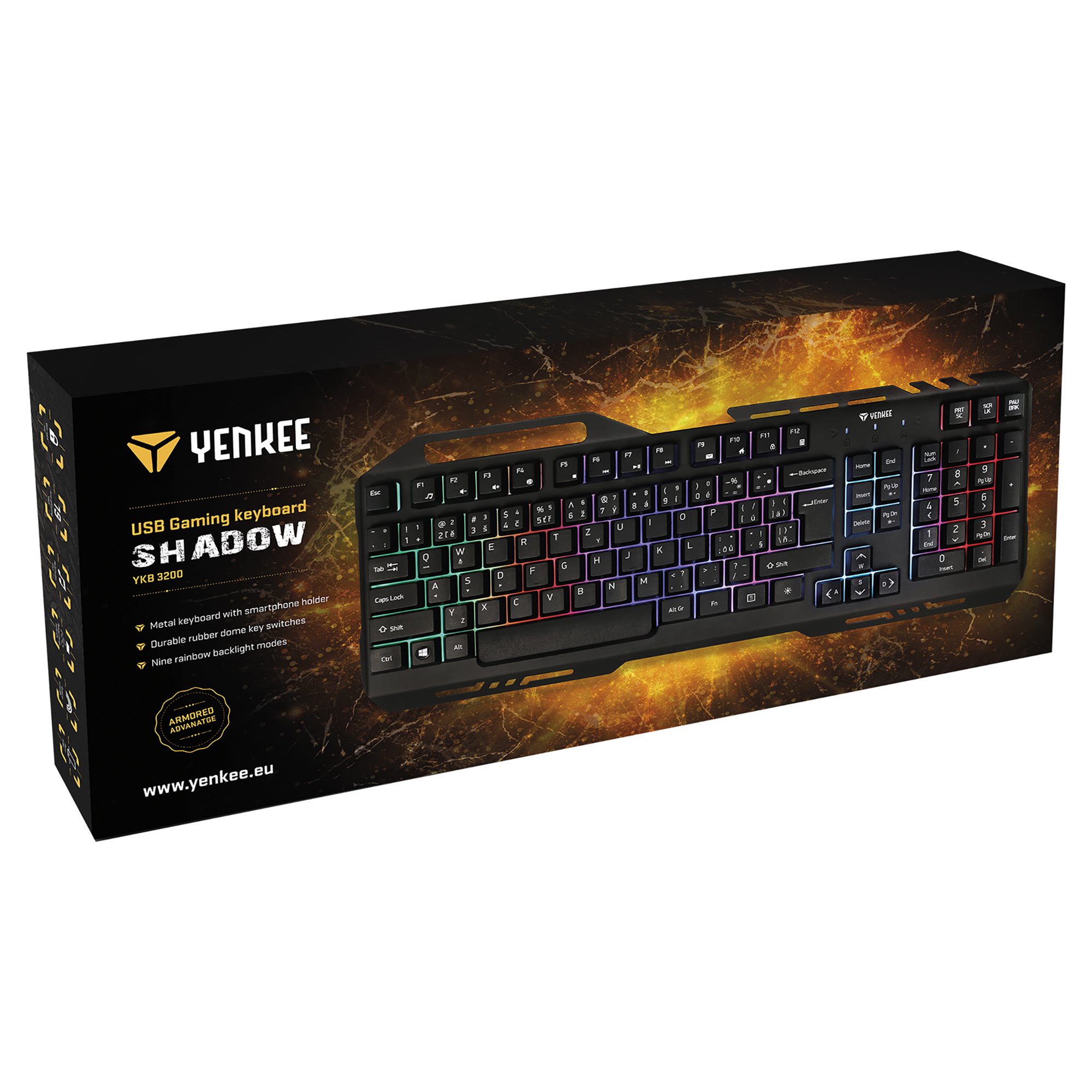 SHADOW YKB 3020 is gaming keyboard with metal plate and adjustable rainbow color backlight. There is total of 9 backlight modes (including backlight off) that you can select according to the current use, game type or environment.