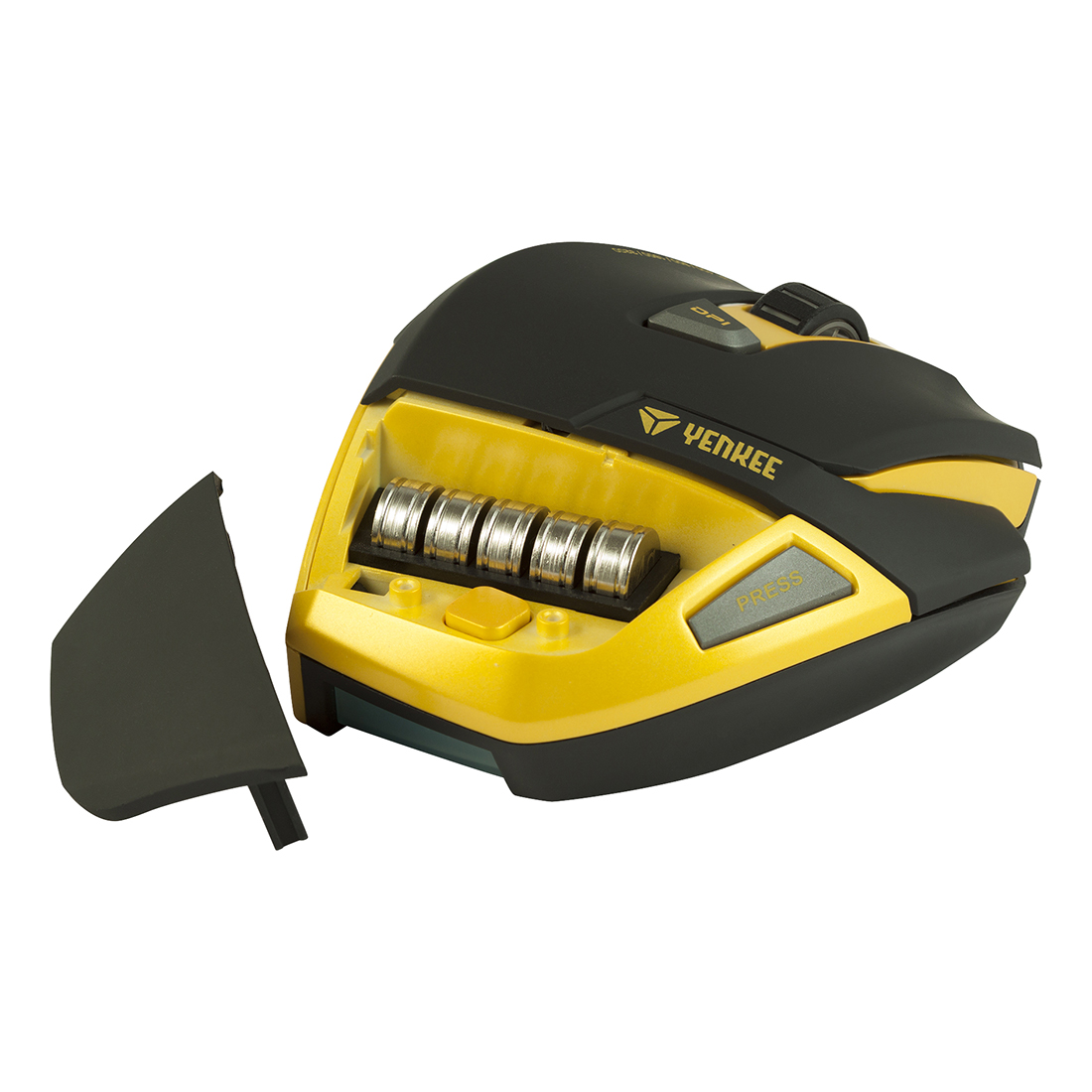 The weight of the mouse can be adjusted by adding or removing 5 weights hidden under the top cover.