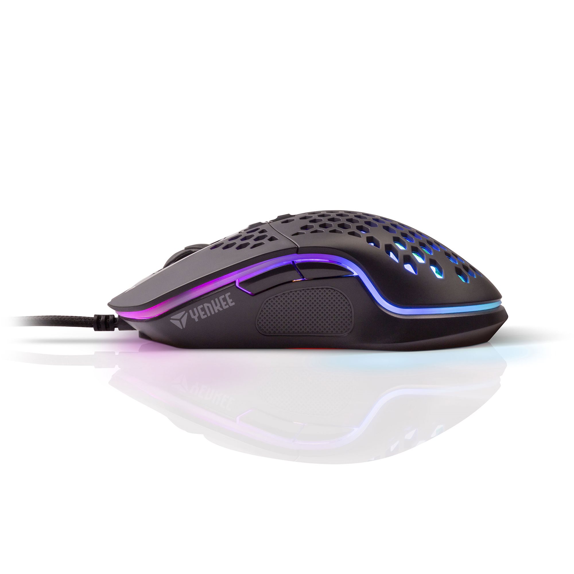Shotgun. Ultralight Shotgun gaming mouse. I am your most favourite gaming mouse for the future. My body is interwoven with holes that not only lighten the entire structure, but mainly add to the airiness. This will prevent your hand from sweating during long game marathons, making the path to the victory even easier!