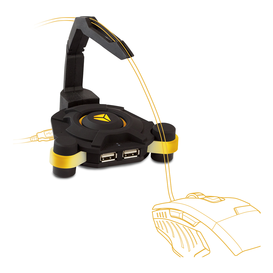Multidirectional flexible cable mount is detachable. Full stability is ensured with inner weights and triangular silicon foot-pad.