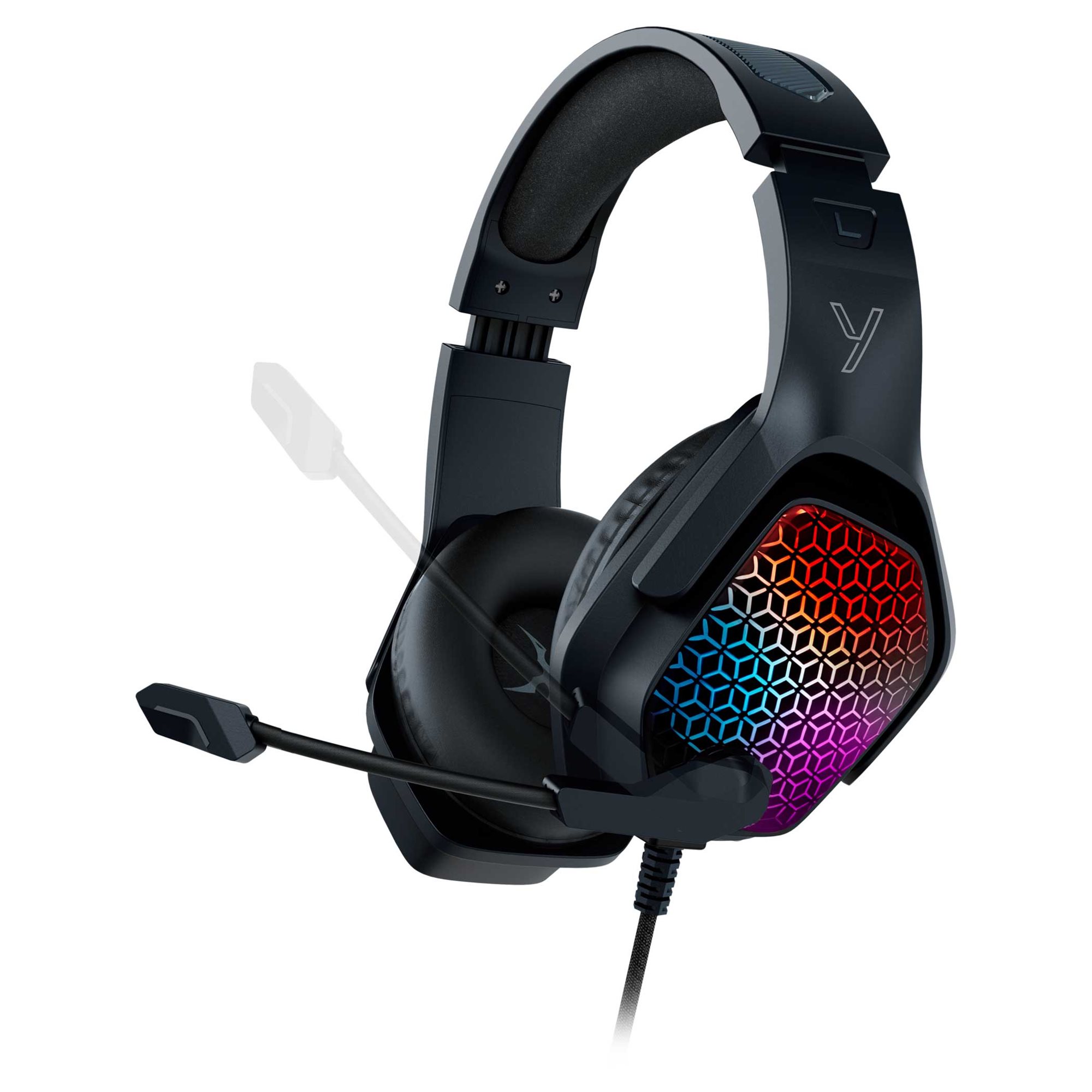 TRINITY - Wired gaming headset for an uncompromising audio experience! With a single 3.5mm jack for playback, it offers simple and practical connectivity. When adding USB connection, it lights up with colorful backlighting, adding a stylish element to your gaming setup.