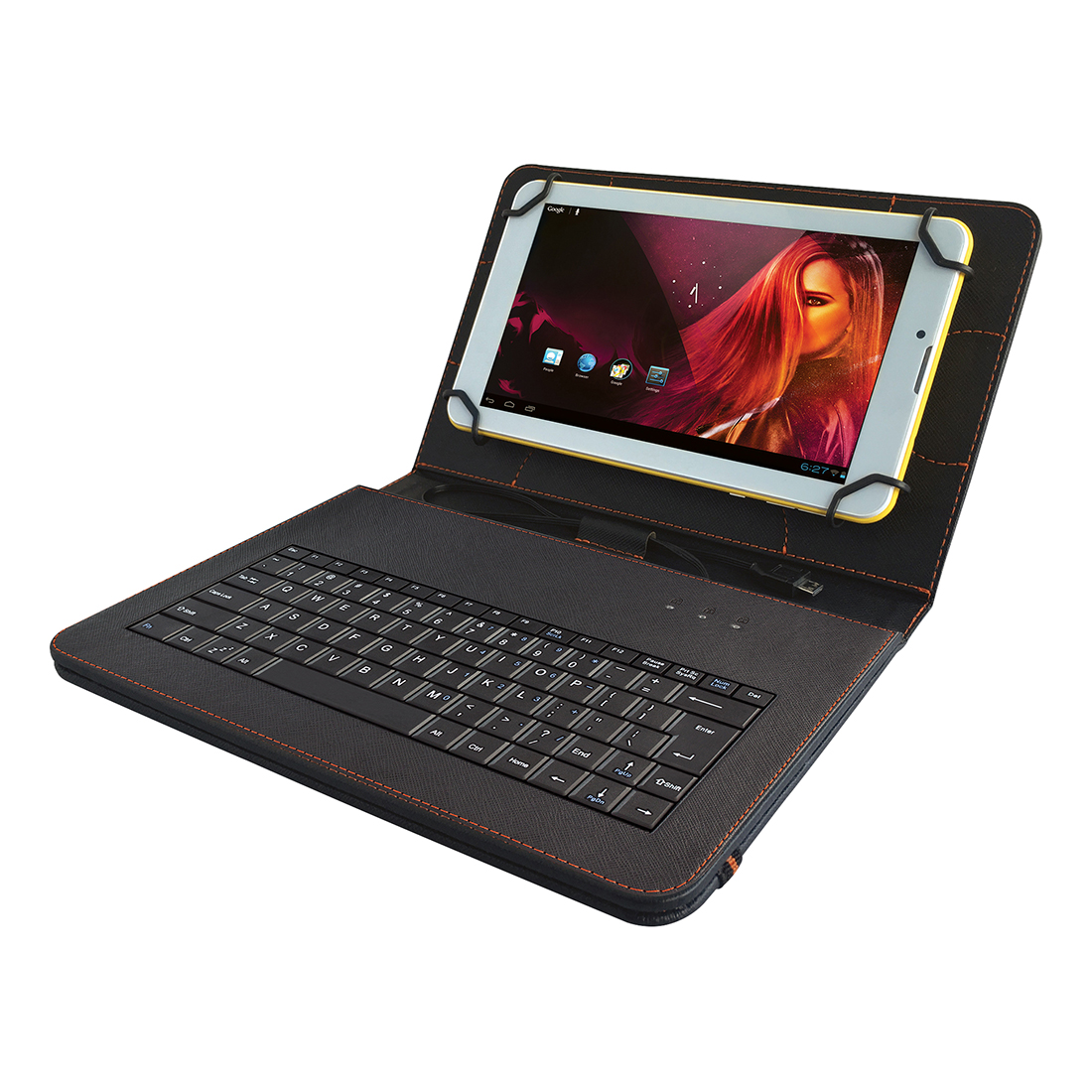 Universal protective case with a QWERTY keyboard and stand for 10" tablets. Innovative corner mounting system ensures safe carrying and prevents the tablet from falling out the of the case.