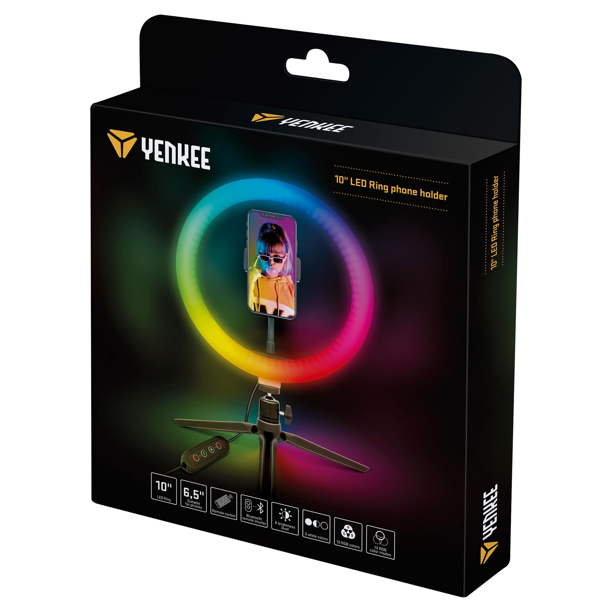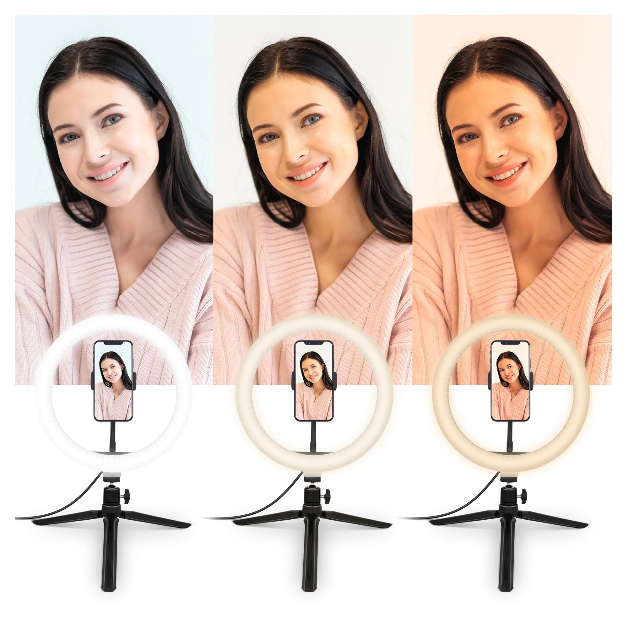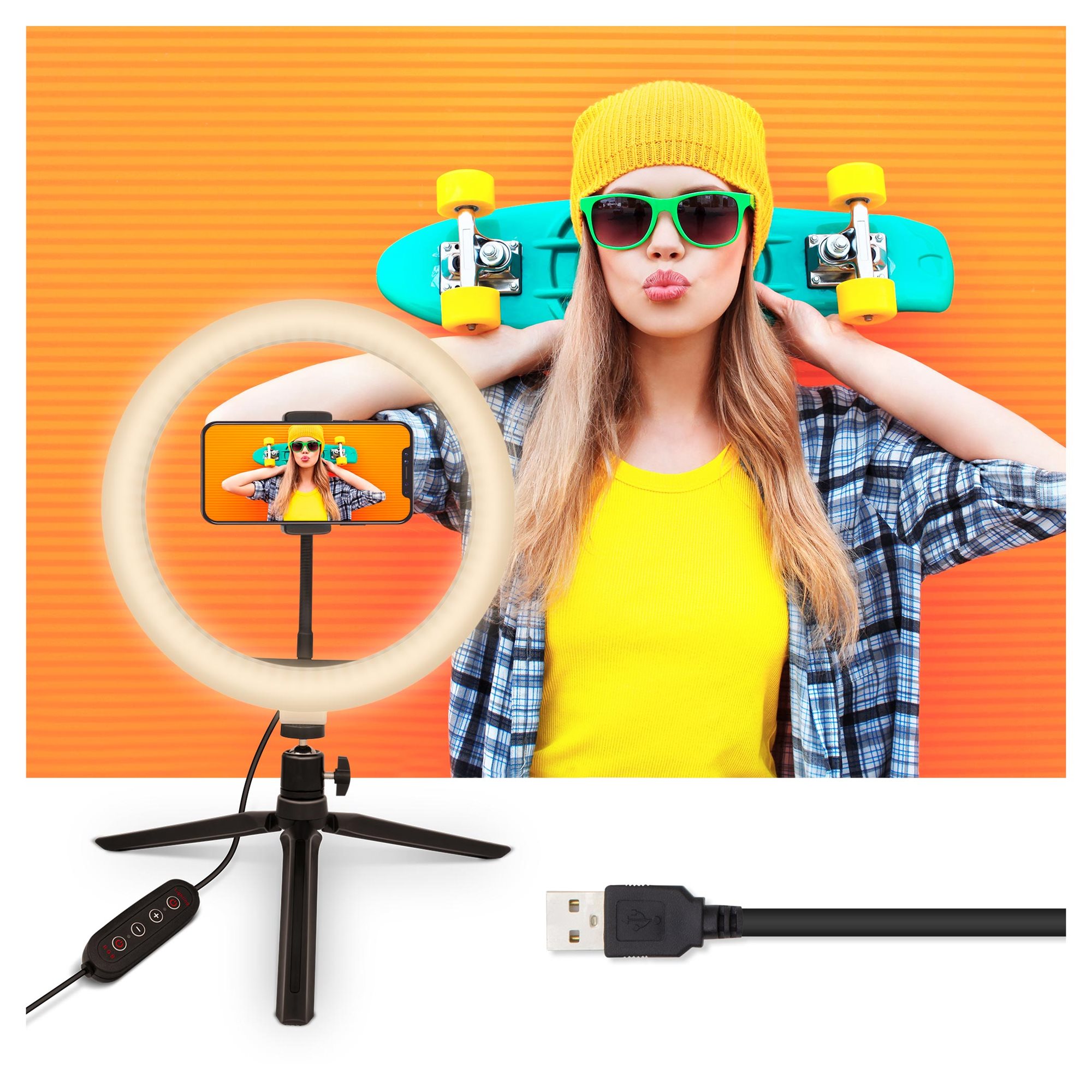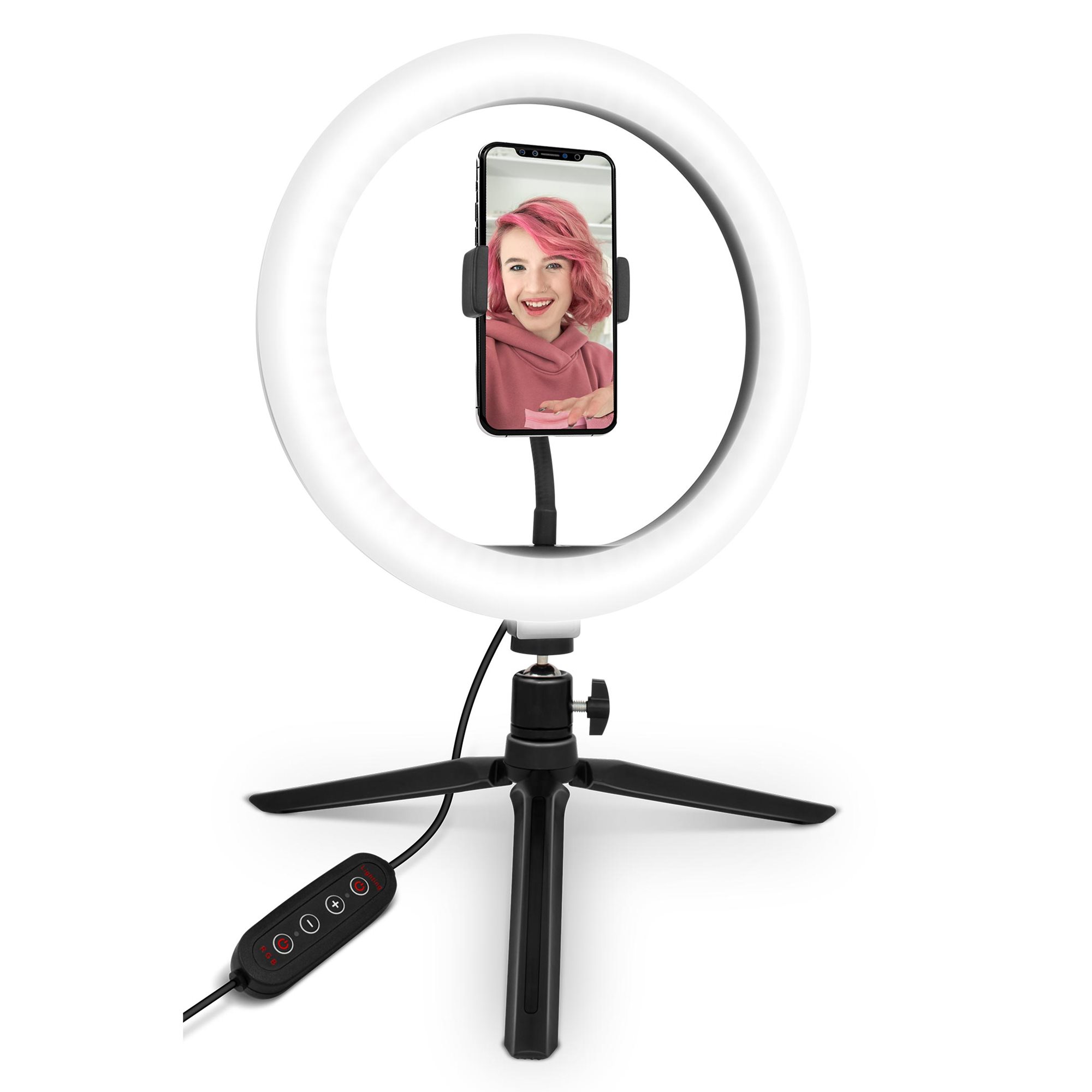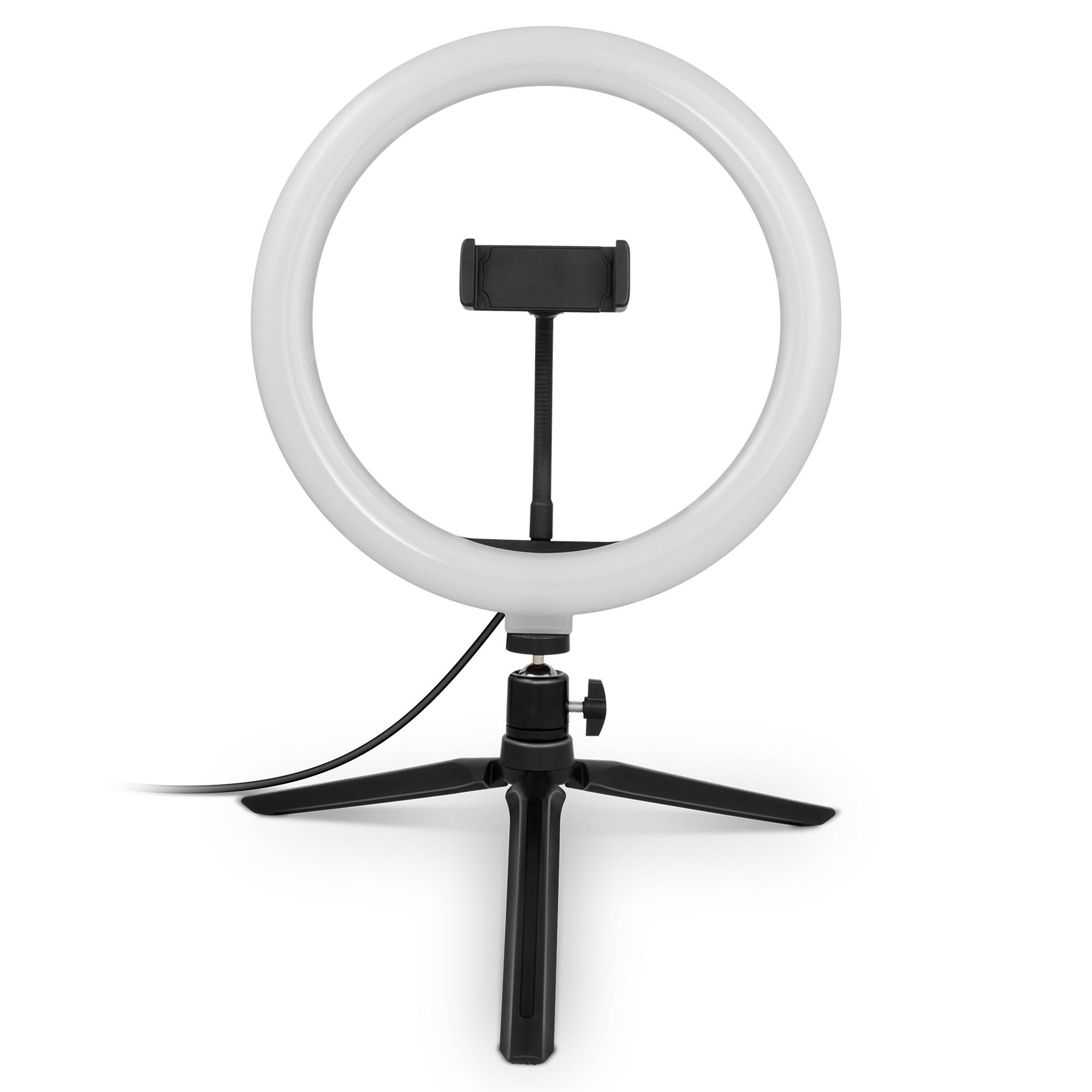 In addition to the 10” LED ring light, my body includes also a handy tripod that can be individually positioned and rotated within 360°. This means only one thing to you. Absolute freedom of making the setting. If you own a phone with a width up to 80mm, you’ve just found what you were looking for. 10W is all that I need for a power supply to be fed into me via a USB-A connector at the end of a power cord with a handy control panel.