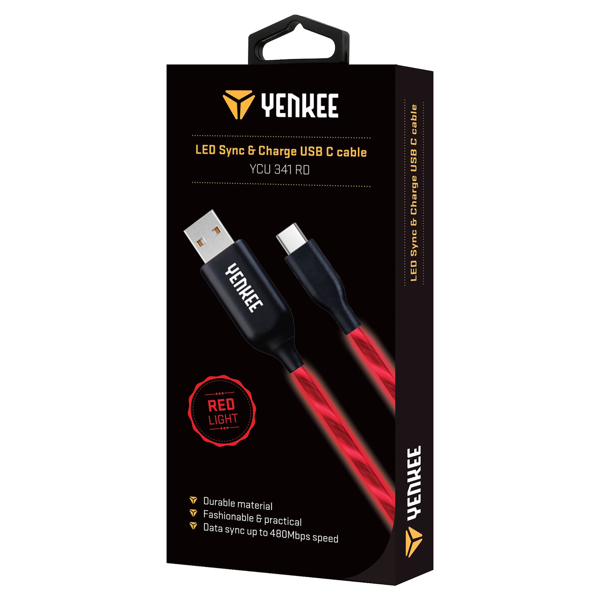 Red illuminated synchronization and charging USB C cable