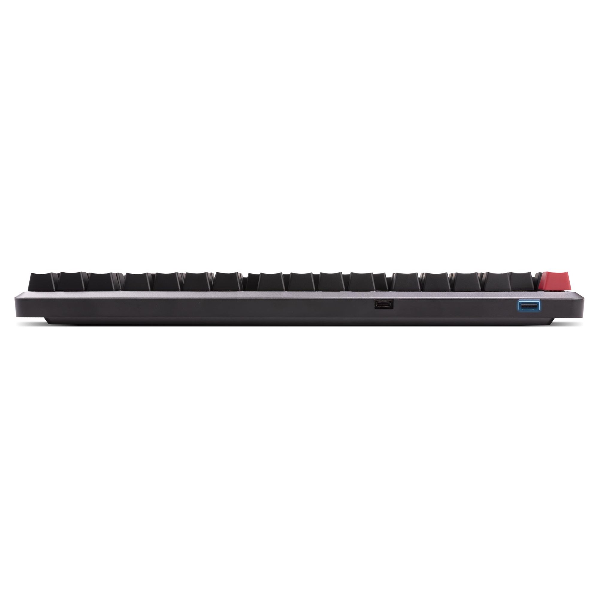 My compact body without a numeric block won’t occupy space on your desktop pointlessly. For you, this means even more space to handle your mouse. You can use the supplied braided cable with USB-C termination for connection to your gaming machine to reach an extremely low keyboard response. In addition, there is another USB “passtrough“ port on my construction for you to provide connection to more peripherals.