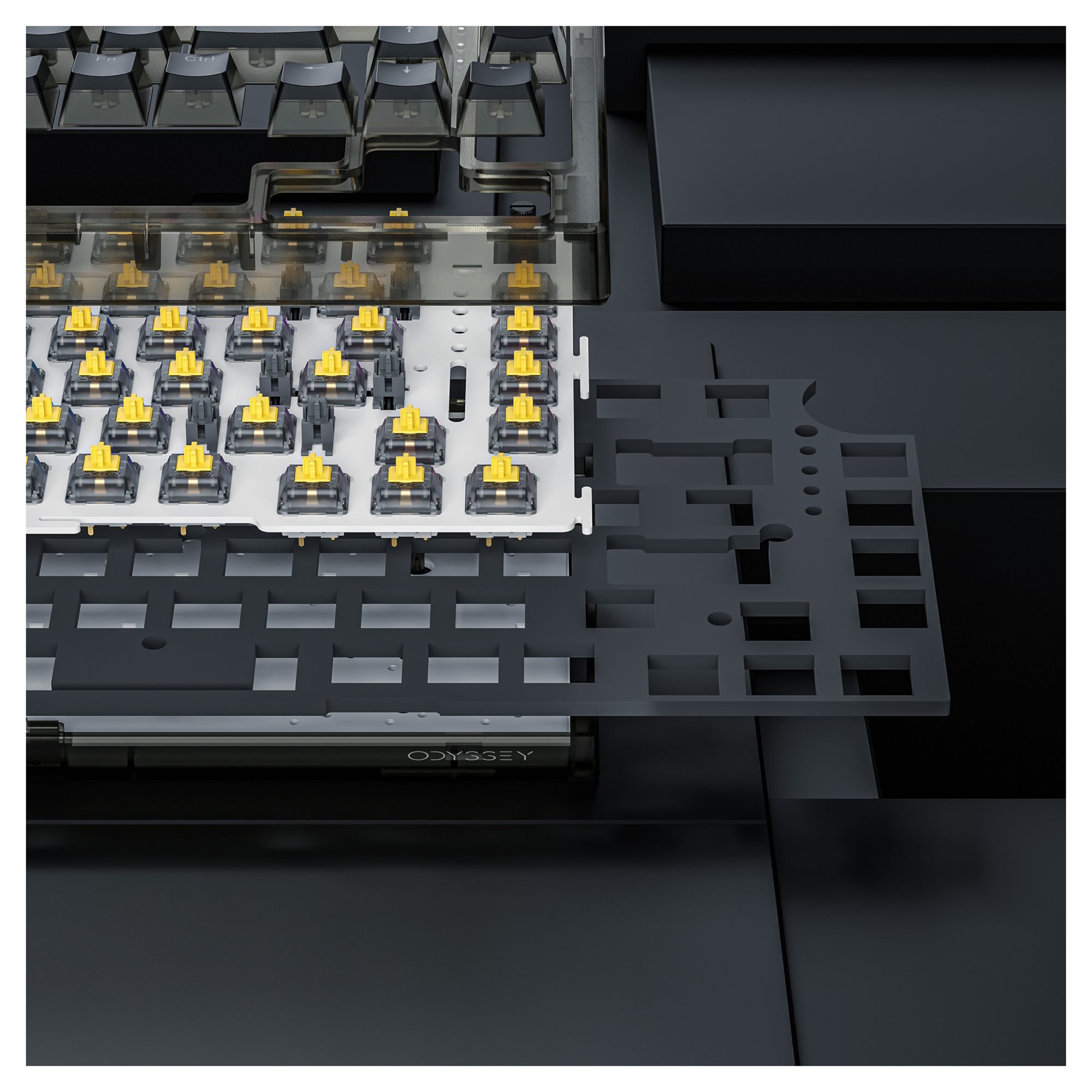 Prepare to be captivated not only by ODYSSEY's remarkable performance but also by its enchanting sound profile. Each keystroke resonates with a deep, satisfying sound, creating a symphony that enhances your typing experience. The secret lies within the meticulously crafted design – ODYSSEY boasts multiple foam inserts strategically placed within its body. These foam inserts serve as acoustic dampeners, absorbing excess vibrations and minimizing reverberations that can lead to a distracting noise. The result? A keyboard that doesn't just feel amazing to type on but also sounds like an orchestra of precision, allowing you to immerse yourself in the rhythm of your work or play. Whether you're a writer seeking the perfect ambiance or a gamer looking to elevate your auditory senses, ODYSSEY's deep and rich sound profile promises an auditory journey like no other.