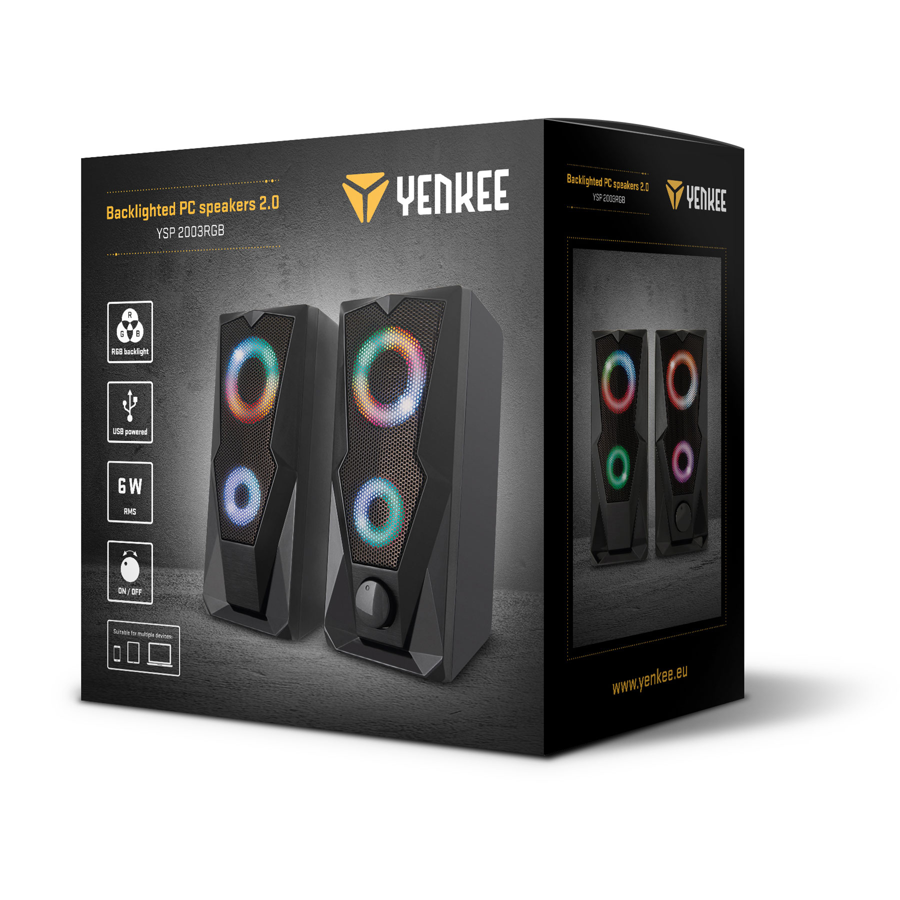 Say goodbye to dull speakers unable to conjure up the right atmosphere. You may want the right music experience even with a smaller audio set. We are YSP2003 stereo speakers offering the RGB backligting that adds a wonderful final touch to the enjoyment of watching movies or listening to your favourite band.