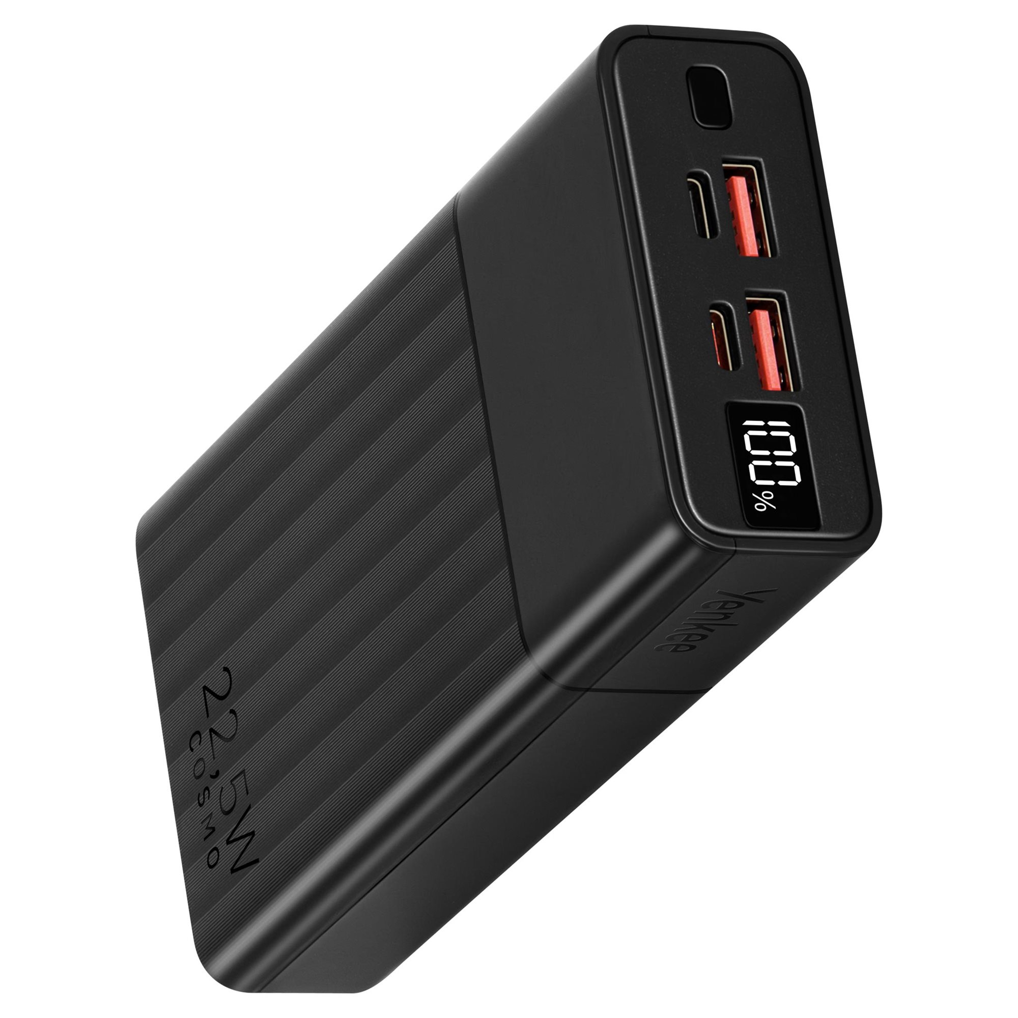 Power bank with 20,000mAh capacity and output power up to 22.5W supporting fast charging of mobile phones and tablets.