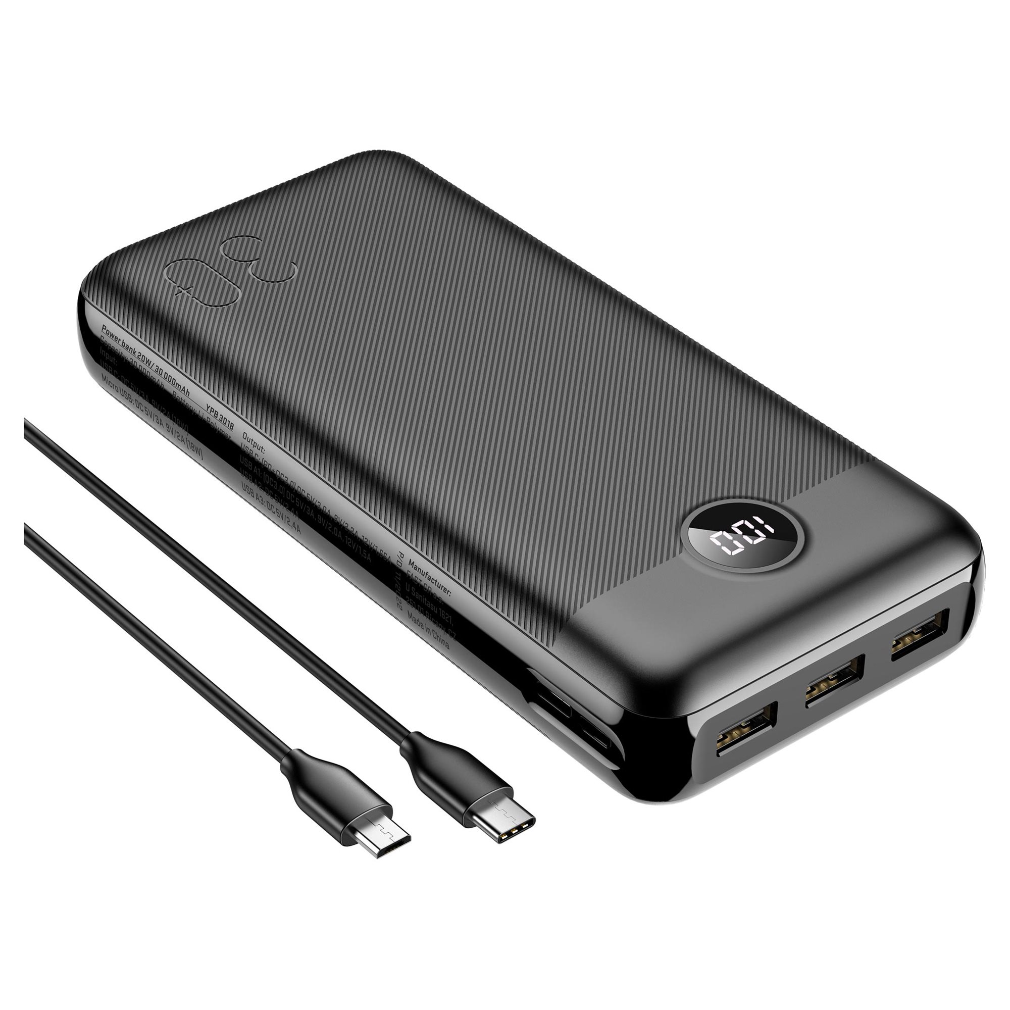 I am YENKEE 3018 power bank with a huge capacity of 30,000 mAh. Thanks to it, I can go without a charge for several days, and still have the power to supply plenty of energy to your smart electronic devices. Charge comfortably and quickly in the mountains, under a tent or on an island in the Pacific and stay in touch with family and friends.