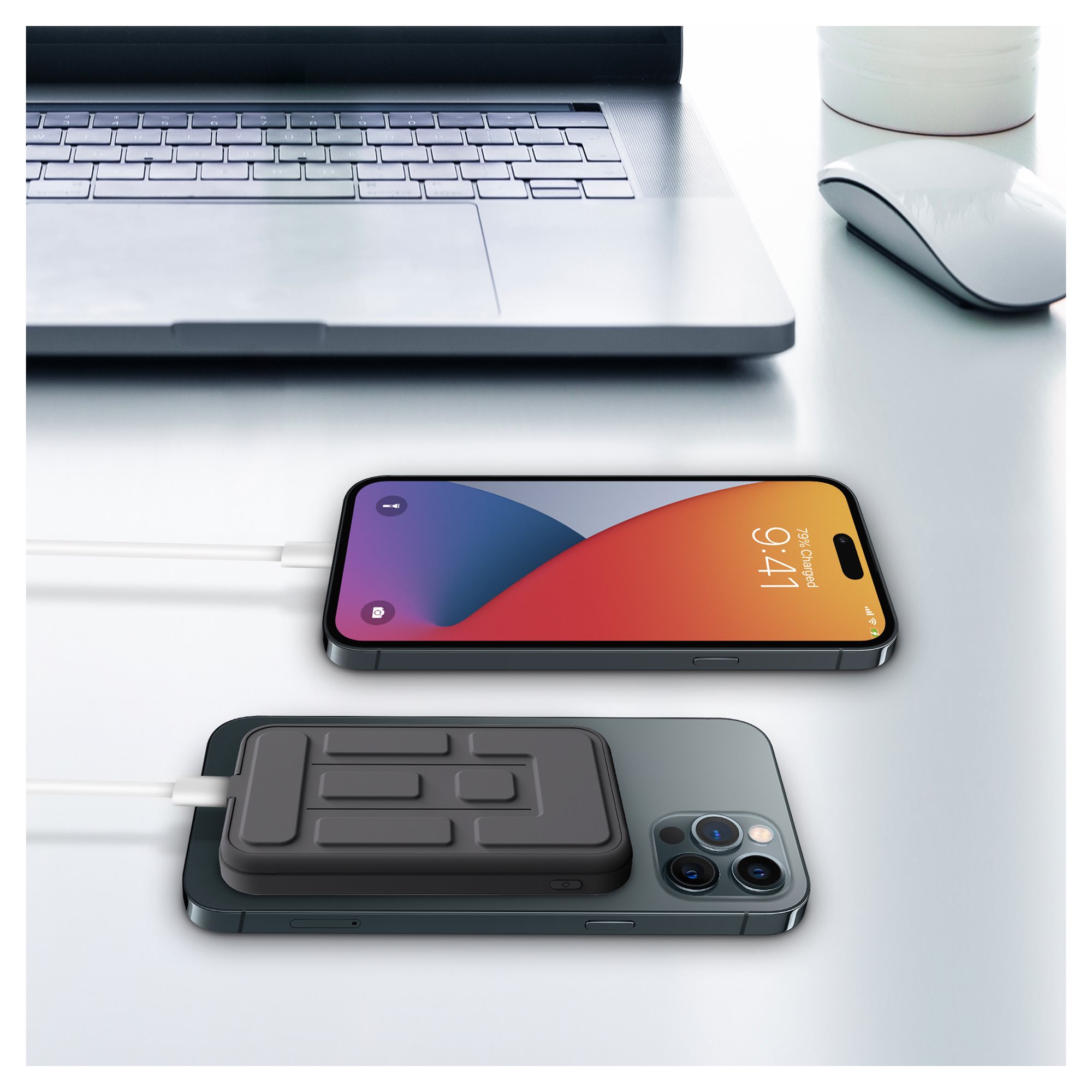 MagSafe compatibility ensures uninterrupted charging while handling your phone. Using magnets, the power bank attaches to your phone for maximum wireless charging efficiency. To start wireless charging, simply place a compatible smartphone on the marked location on the power bank body and wireless charging will begin.