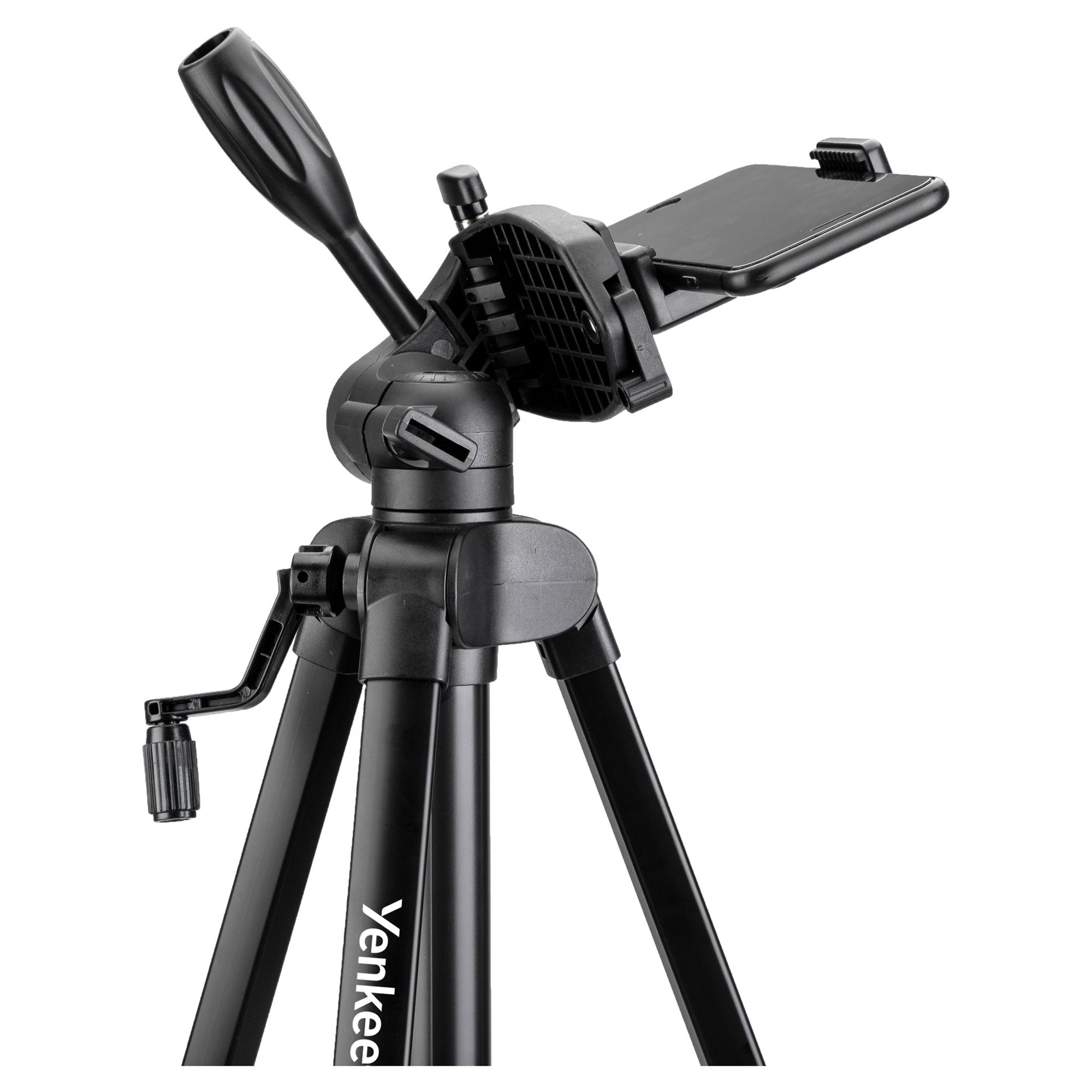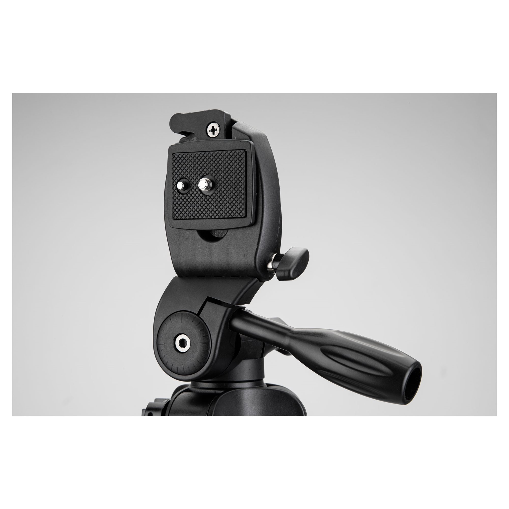 Travel camera tripod with universal 1/4" thread and mobile phone holder ideal for entry-level photography enthusiasts. Variable direction and height adjustment allows for easy and stable composition. The low design weight and simple folding supports taking the tripod directly into the field.