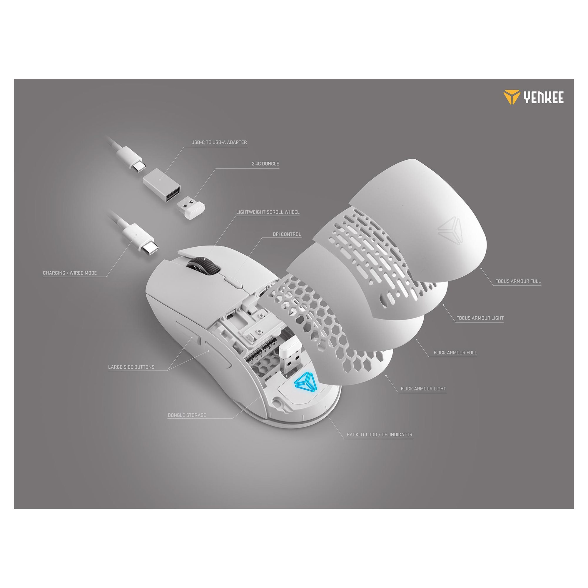 The SWIPE wireless mouse conveniently communicates with your computer via a 2.4GHz receiver, making your reactions virtually seamless. Say goodbye to wired mice forever and experience the relaxing freedom of playing your favourite games. The integrated 300mAh battery guarantees up to 44 hours of continuous use. For gamers looking for a more traditional setup, it's possible to use the mouse with the modern USB-C connector, which you'll find in the box, including a USB-A reducer.