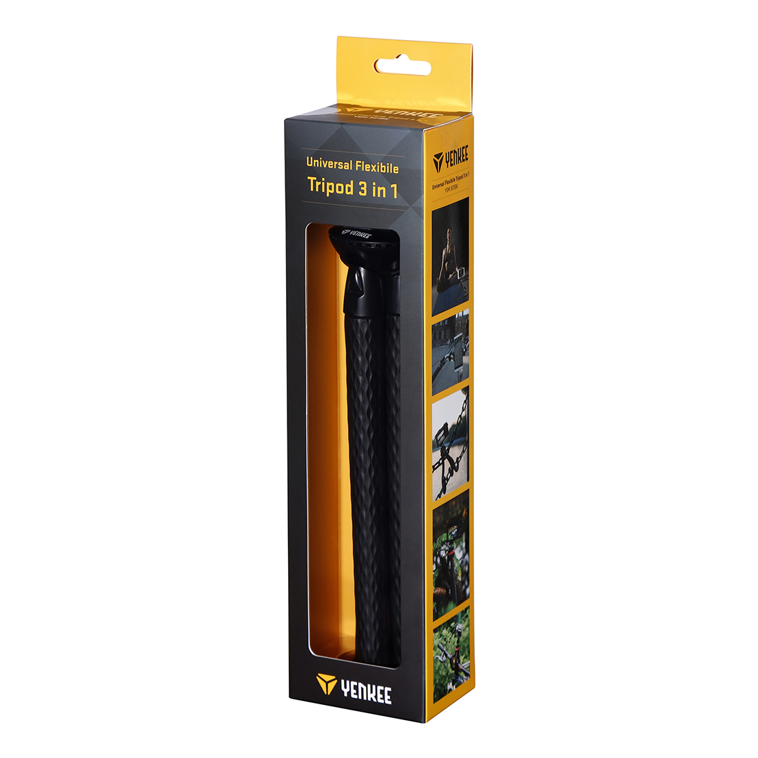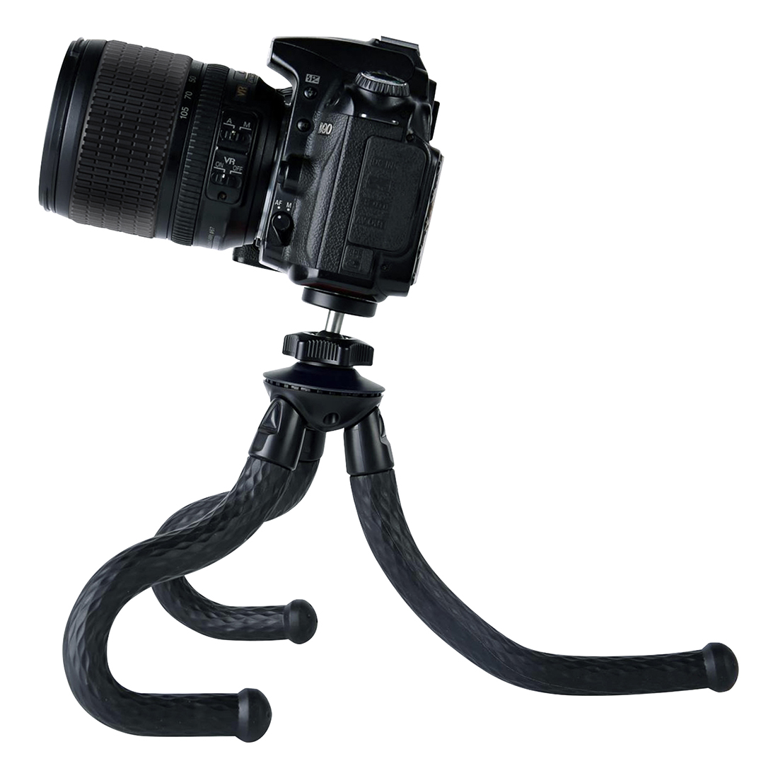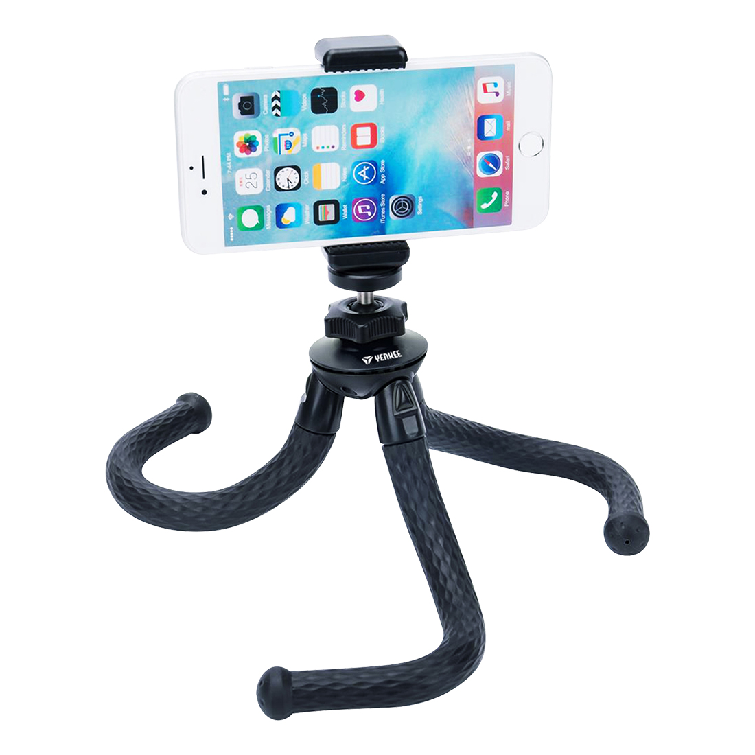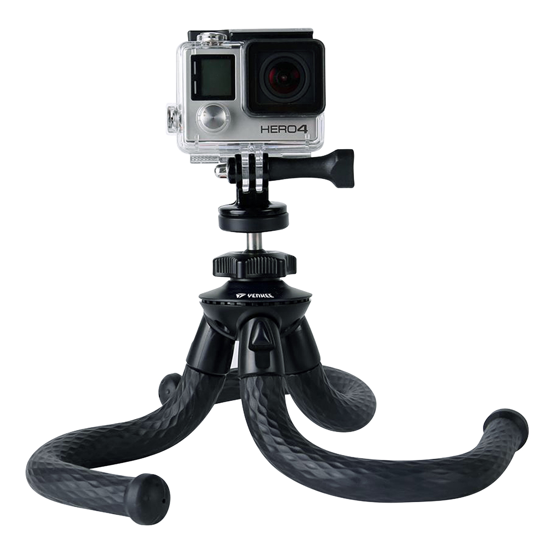 Flexible, universal and portable tripod with built in standard 1/4" screw-thread for all cameras, shooting intents and conditions. Tripod set comes with phone holder and tripod mount for action cameras.