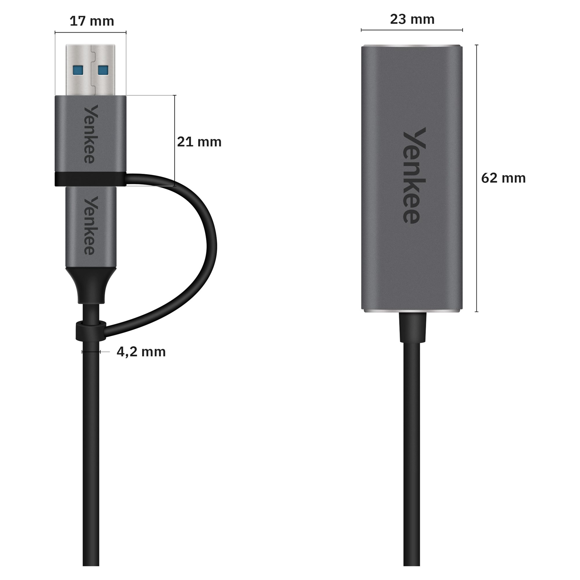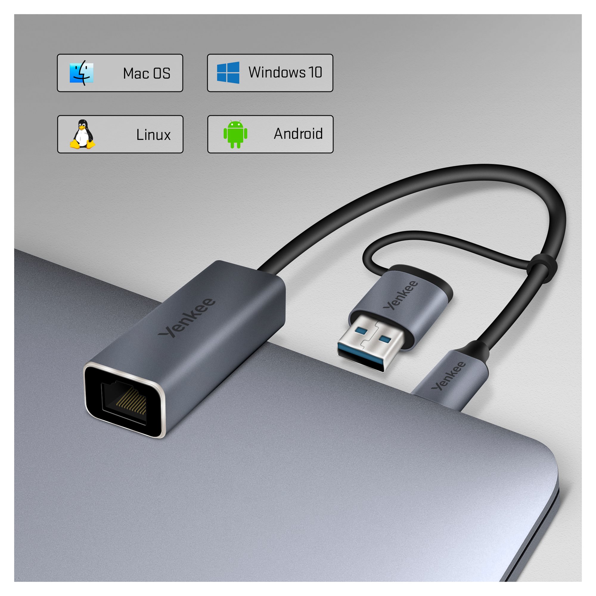 Whether you need to connect to the Internet using USB-A or USB-C, you can count on me. I have both types of USB straight away. It's only up to you which port you choose. At the other end, of course, you will find a classic RJ-45 connection to connect a network cable.