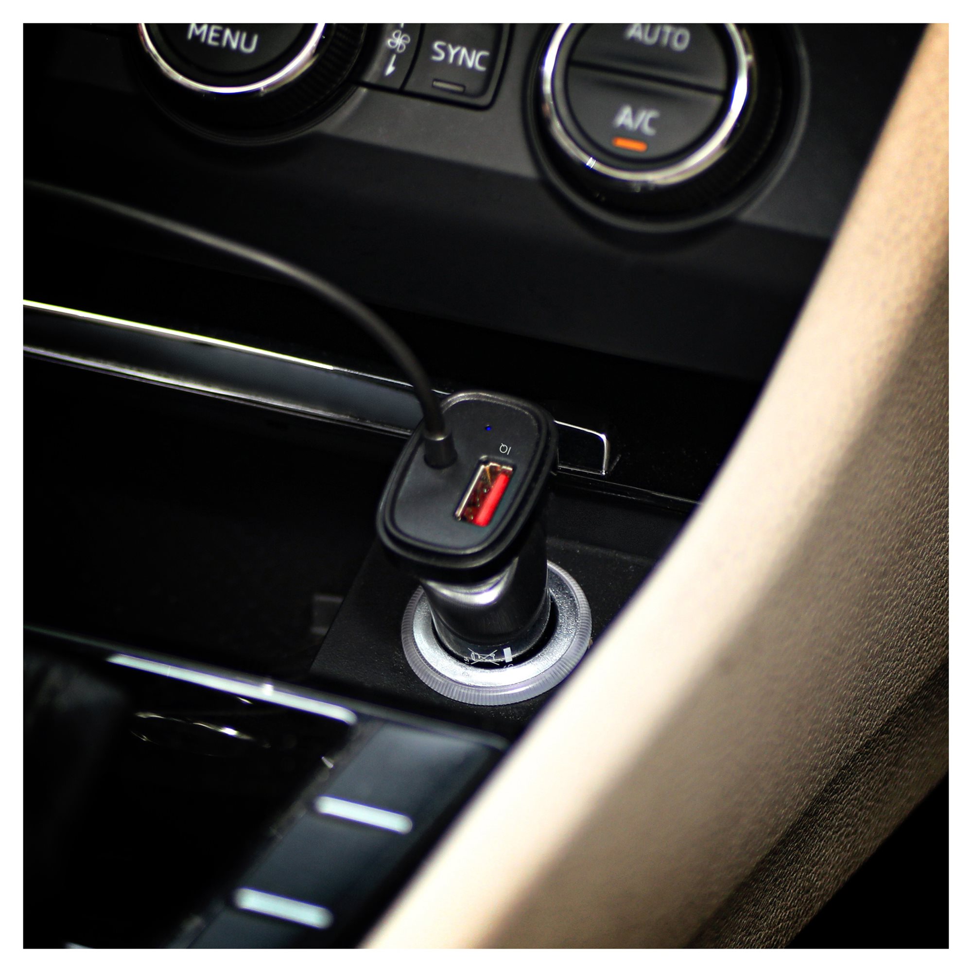 Car charger with integrated USB C cable (max. 1.35m) and extra USB port. Compatible with a wide range of USB type C or USB devices.